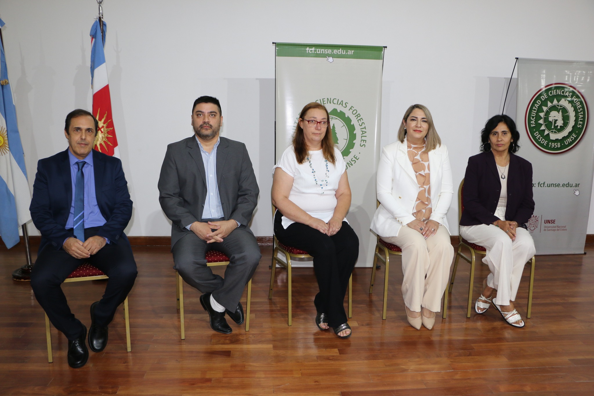 La ceremonia fue presidida por la Decana de la Facultad de Ciencias Forestales, Dra. Nancy Giannuzzo; el Vicedecano, Dr. Miguel Sarmiento; el Rector de la UNSE, Lic. Marcelino Ledesma; y la Vicerrectora, Dra. Fernanda Mellano.
