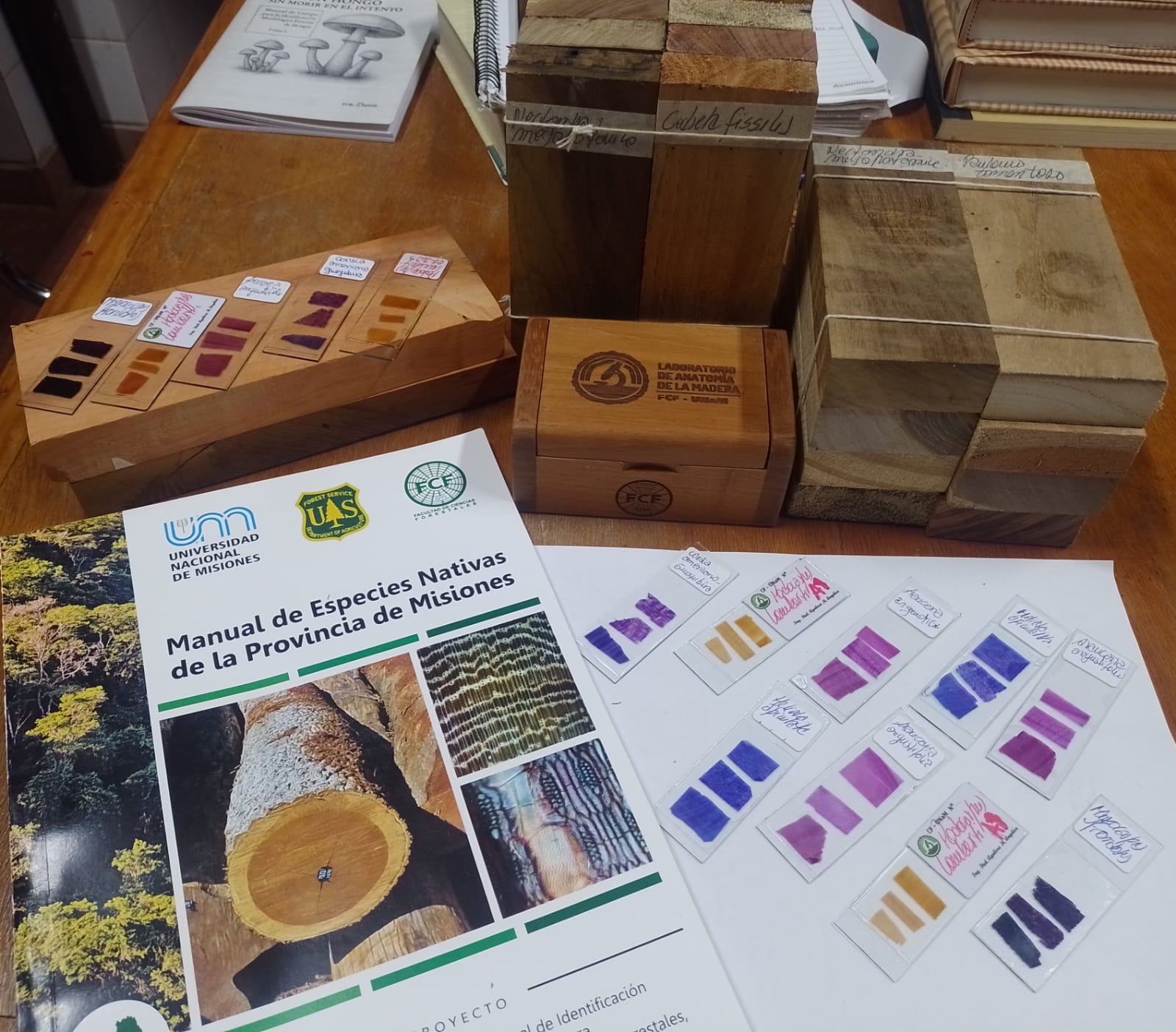 Durante el encuentro se concretó un intercambio de muestras macro y microscópicas de maderas nativas y exóticas. El Dr. Díaz Zirpolo aportó material correspondiente a especies del Parque Chaqueño de los géneros Schinopsis, Bulnesia y Neltuma, mientras que la UNaM contribuyó con muestras de la Selva Misionera de los géneros Cedrela, Cordia, Araucaria, Podocarpus, Myroxylon, Nectandra y Pinus. Asimismo, se incorporó material bibliográfico, incluyendo el “Manual de Especies Nativas de la Provincia de Misiones”.